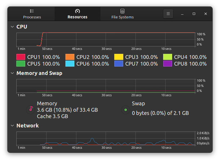 How does it work? Great! Timing tests show that, on a twelve core machine, for_each/accumulate computes keystream very nearly twelve times faster. On Linux, the Resources tab of the System Monitor utility clearly shows that core usage is maxed out. It is a thing of beauty to see all of the hardware getting utilized, while the system is still stable.